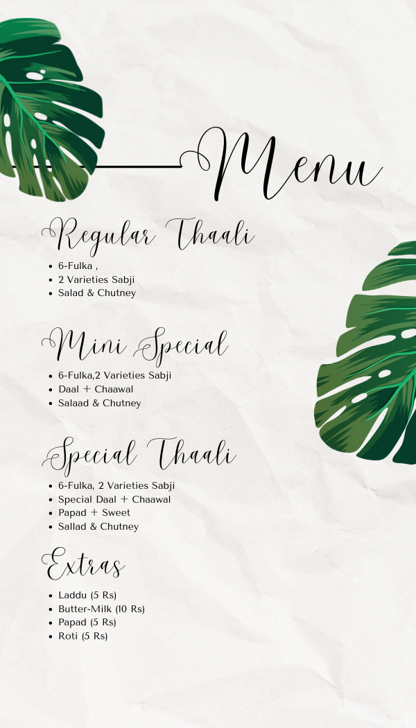 Our Focuse Is To Provide The Quality Food At The Resionable Cost. No Other Website Provides You The Infrastructure Of Ordering The Tiffin-Box. A Small Town Service Of Tiffin-Box Which Will Be Going To Make A Revolutionary Change In Food Services!